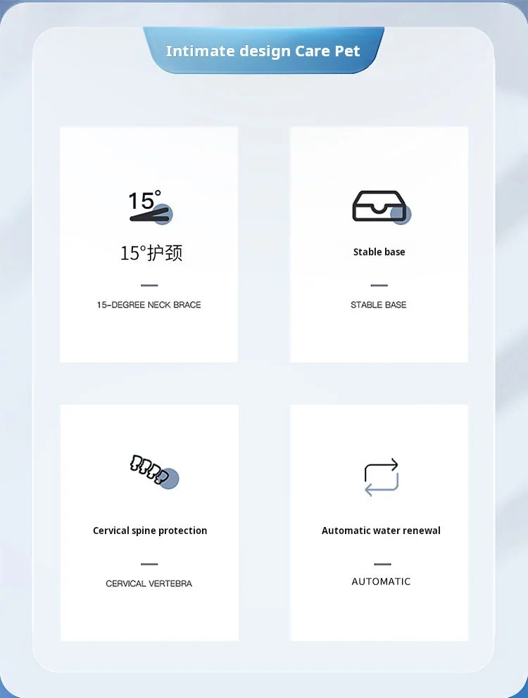 Praktisk 3-i-1 skålsett med matskål, vannskål og automatisk vannflaske i ett. Den skrå designen gir en mer komfortabel spisehøyde og reduserer belastning på nakken. Vannflasken fyller på automatisk etter hvert som dyret drikker – alltid friskt vann uten søl. Perfekt for katter og små hunder. Lett å rengjøre og tar minimalt med plass.